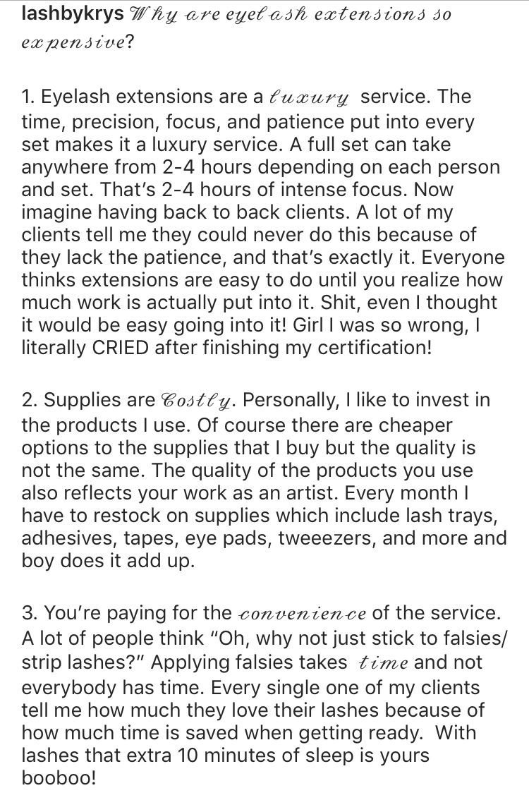 You will get a lash brush that you will gently use everyday when the lashes need groomed. Clients with dry eyelids I recommend to wash the lashes with Eternal Beauty's Lash & Eye Foaming Cleanser with lash cleansing brush then place moisturizer/Vaseline on the lids, not on the lashes. To remove any makeup or to clean the lashes use an oil or I highly recommend Eternal Beauty's Lash & Eye Foaming Cleanser which is pH Balanced, Hypo-Allergenic, Vegan & Organic. The less you mess with the lashes the better. You can put mascara on the lower lashes if desired but never on the extensions even if it is made for them. It breaks down the bond of the adhesive. You will not need mascara since the extensions give the illusion as if you are wearing mascara. Every client is not the same and lashes are customized to each individual depending on your eye shape. The process is never rushed. My work is all about quality. Do not tug, rub or pull as this will cause breakage to your natural lashes. You will notice more growth with the extensions. NovaLash adhesive cures instantly, you can get them wet immediately.